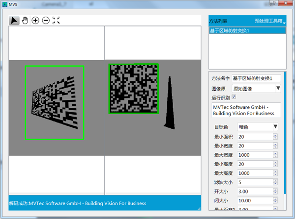 2、針對(duì)相機(jī)嚴(yán)重不能與產(chǎn)品平行從而產(chǎn)生二維碼嚴(yán)重畸變的的情況通過基于區(qū)域的放射變換而達(dá)到檢測(cè) ...