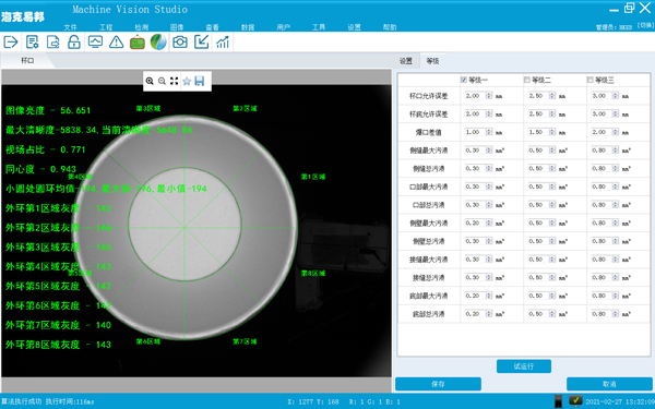 紙杯五相機(jī)檢測(cè)系統(tǒng)集成紙杯口部、底部、外壁三大功能,采用5個(gè)相機(jī),紙杯口部1個(gè)相機(jī)檢測(cè),底部1個(gè)相機(jī)檢測(cè),外壁3個(gè)相機(jī)夾角120°分布檢測(cè),對(duì)紙杯進(jìn)行全方位檢測(cè)。適用于檢測(cè)儀設(shè)備和制杯機(jī)。