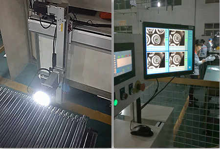 不同的產品在設置工程時對應不同的相機及光源,該視檢機由五個相機,10個光源組成,覆蓋180度照射面,確保不同大小及規格的產品都能得到適合的檢測工位。做到合格品與不合格品的分揀,當檢測到不良時,可將不良品分揀收集。