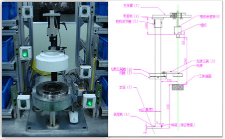 轉子缺陷視覺檢測系統”,系統通過定位裝配線上轉子的孔位特征,進行圖像識別、分析計算轉子的特征信息,來判斷產品是否符合要求,并輸出控制信號。檢測過程為自動測量,測試完畢后,合格時綠燈亮,不合格時紅燈亮,異常時給出異常信號,同時對應輸出OK或NG信號,并在工控機存儲不合格零件圖片。本設備主要應用于零配件的生產過程中,如:汽車行業、精密加工行業等等。