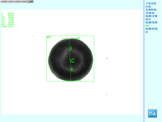 本公司基于機器視覺圖像處理技術研發在藥粒檢測過程中,需進行藥粒上白點、藥粒圓不圓、藥粒的粘連、藥粒的色澤正確等功能,檢測完成后輸出OK、NG信號,在排廢位進行剔除動作。本系統將通過快速獲取在線對藥粒的圖像,通過圖像識別、分析或計算獲取藥粒特征信息,來判斷是否符合要求,并輸出控制信號。系統主要模塊有:觸發定位模塊,圖像處理模塊、控制模塊。根據用戶需求,樣品移動到檢測位時觸發相機、視覺系統輸出檢測信號,從而完成檢測功能。