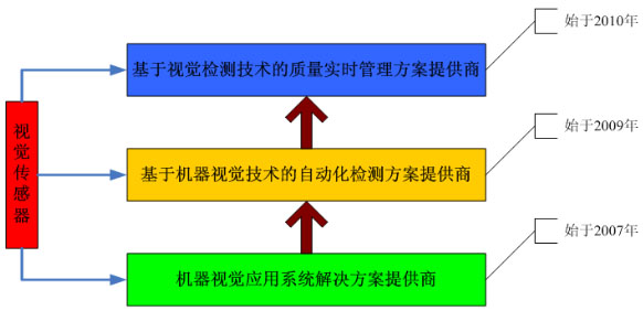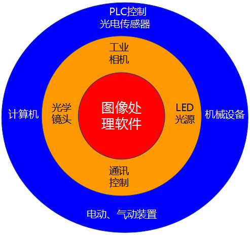 在現代工業自動化生產中,涉及到各種各樣的檢驗、生產監視及零件識別應用,例如零配件批量加工的尺寸檢查,自動裝配的完整性檢查,電子裝配線的元件自動定位,IC上的字符識別等。通常人眼無法連續、穩定地完成這些帶有高度重復性和智能性的工作,其它物理量傳感器也難有用武之地。由此人們開始考慮利用光電成像系統采集被控目標的圖像,而后經計算機或專用的圖像處理模塊進行數字化處理,根據圖像的像素分布、亮度和顏色等信息,來進行尺寸、形狀、顏色等的判別。這樣,就把計算機的快速性、可重復性,與人眼視覺的高度智能化和抽象能力相結合,由此產生了機器視覺的概念。