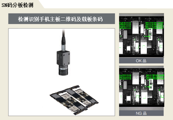 主要功能:檢測識別手機主板上的二維碼信息及載板上的條碼,檢測結果以字符串形式發送給服務器,上位機進行分板處理。